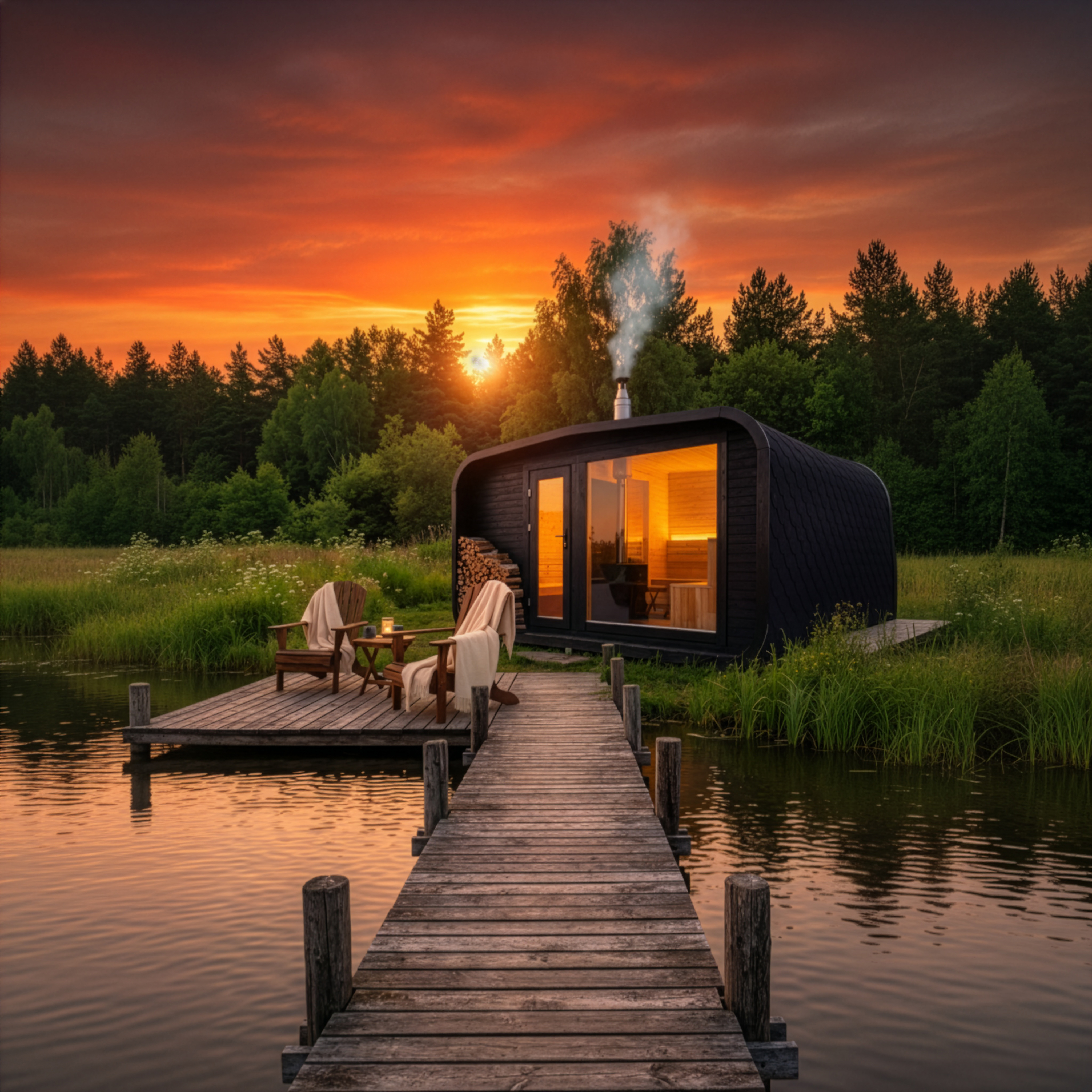 Flamma är en exklusiv bastu som förenar stilren design med hög funktionalitet. Den är tillverkad av svenskt trä för en robust och långlivad konstruktion. Bastutunnan är utrustad med ett stort panoramafönster som ger en fantastisk utsikt och skapar en harmonisk koppling till omgivningen. Modellen har en tilltalande design och passar bra för de som vill ha en bastu med mer karaktär och en visuell effekt som påminner om en brasa. Flamma är idealisk för att skapa den rätta bastukänslan och ge en lugnande effekt både för kropp och sinne.