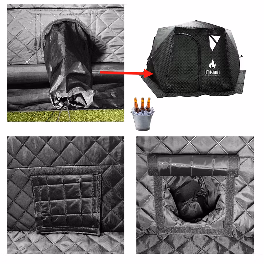 Med rätt ved når du enkelt upp till 100°C. Den låga luftvolymen och isolerade konstruktionen gör att tältet värms upp snabbare än en vanlig bastu.