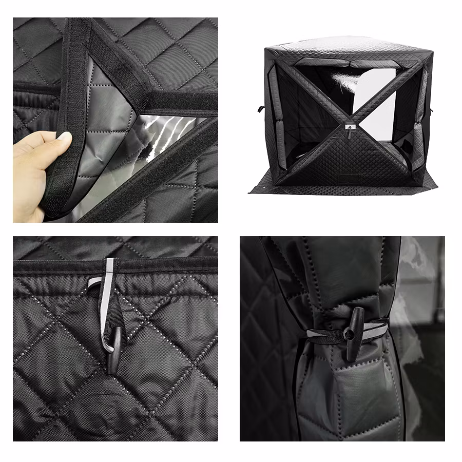 Sandhamn är ett stabilt och rymligt bastutält med fullstor dörr, panoramafönster och supersnabb pop‑up‑funktion.