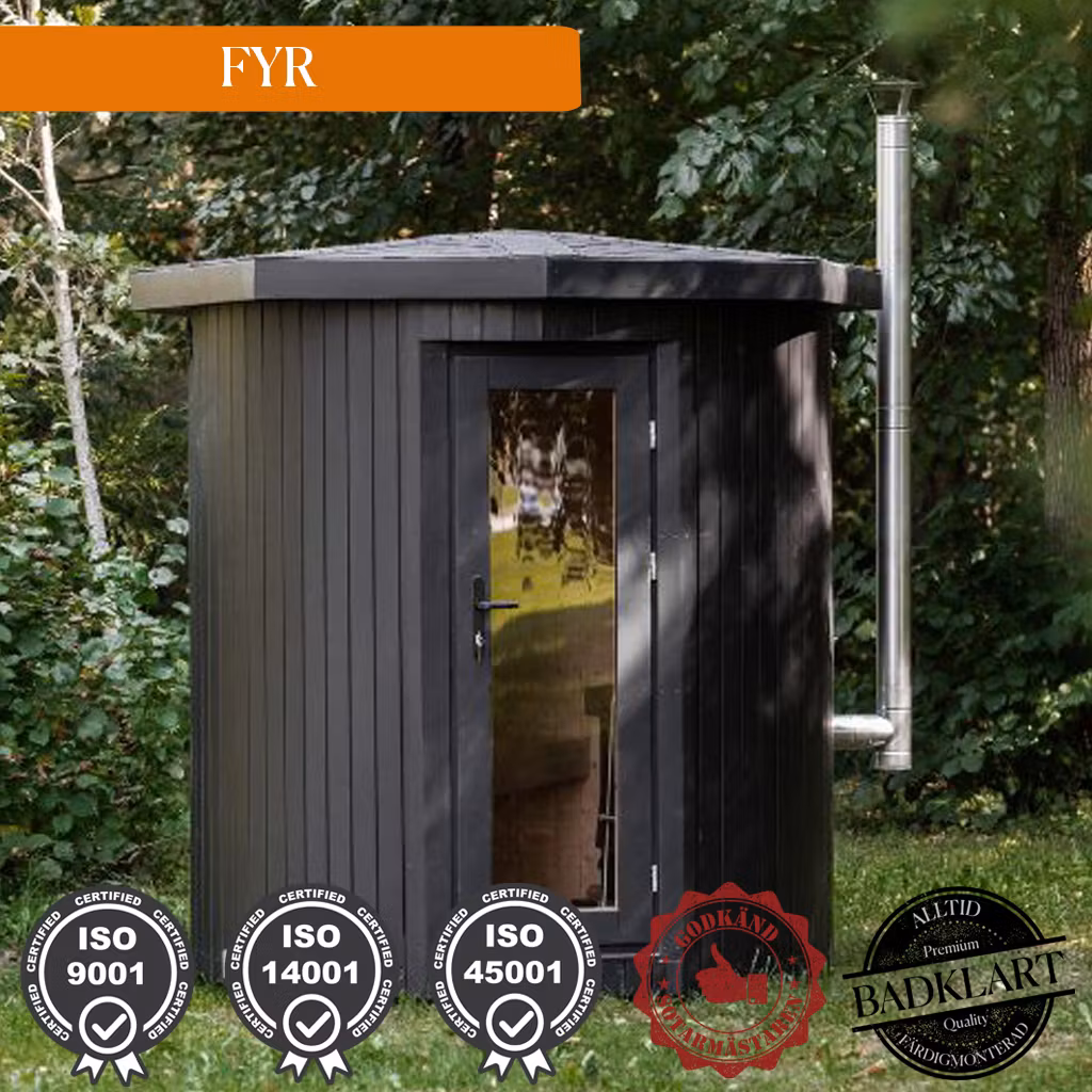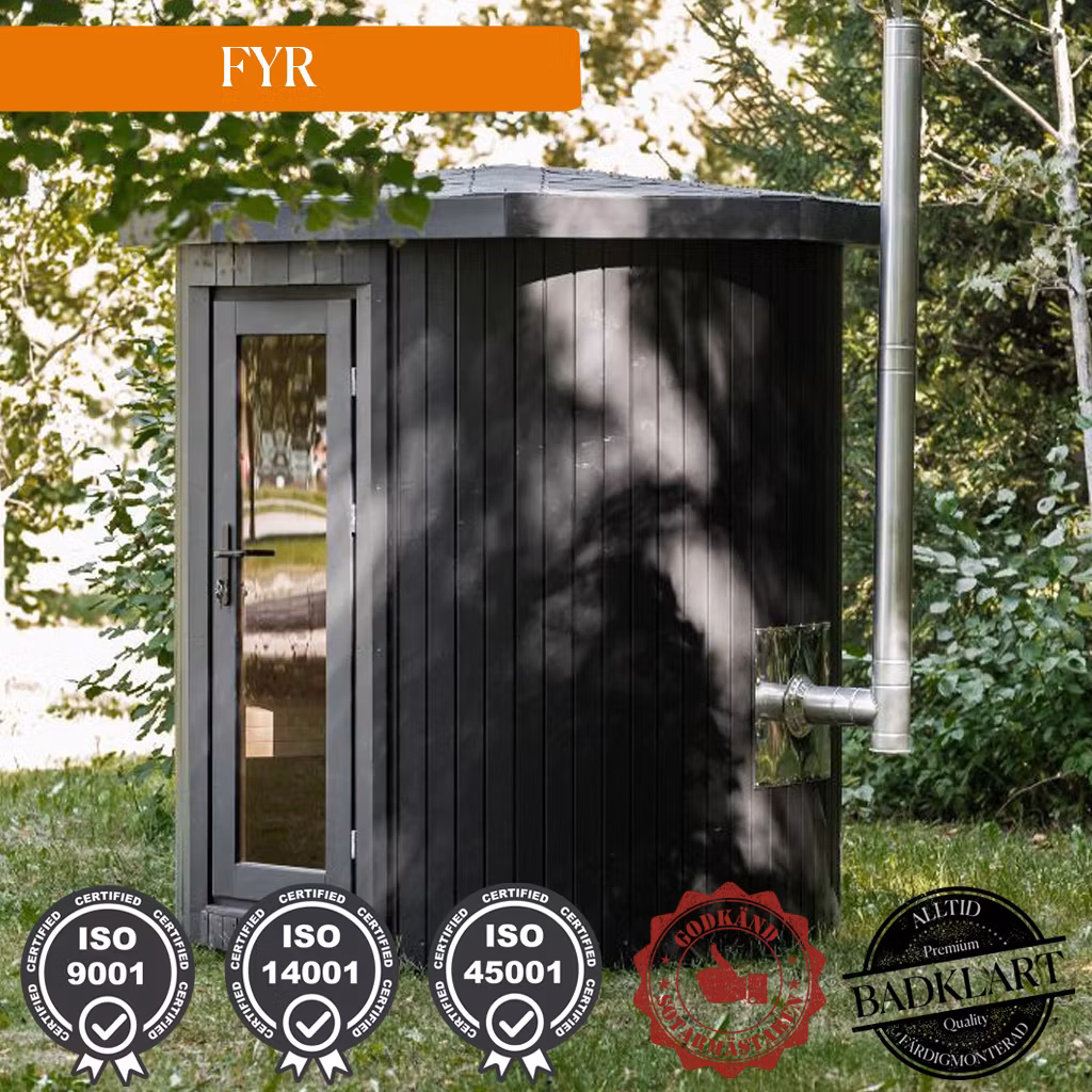 Bastu FYR är en stående bastu från Eldsmedjan. Den är en välbyggd klassisk bastutunna. Utvändig diameter är på 2,1 meter och invändigt diameter på 2,0 meter. Höjd invändigt 2 meter och utvändigt 2,5 meter. Bastun stående modell för den lättplacerad.