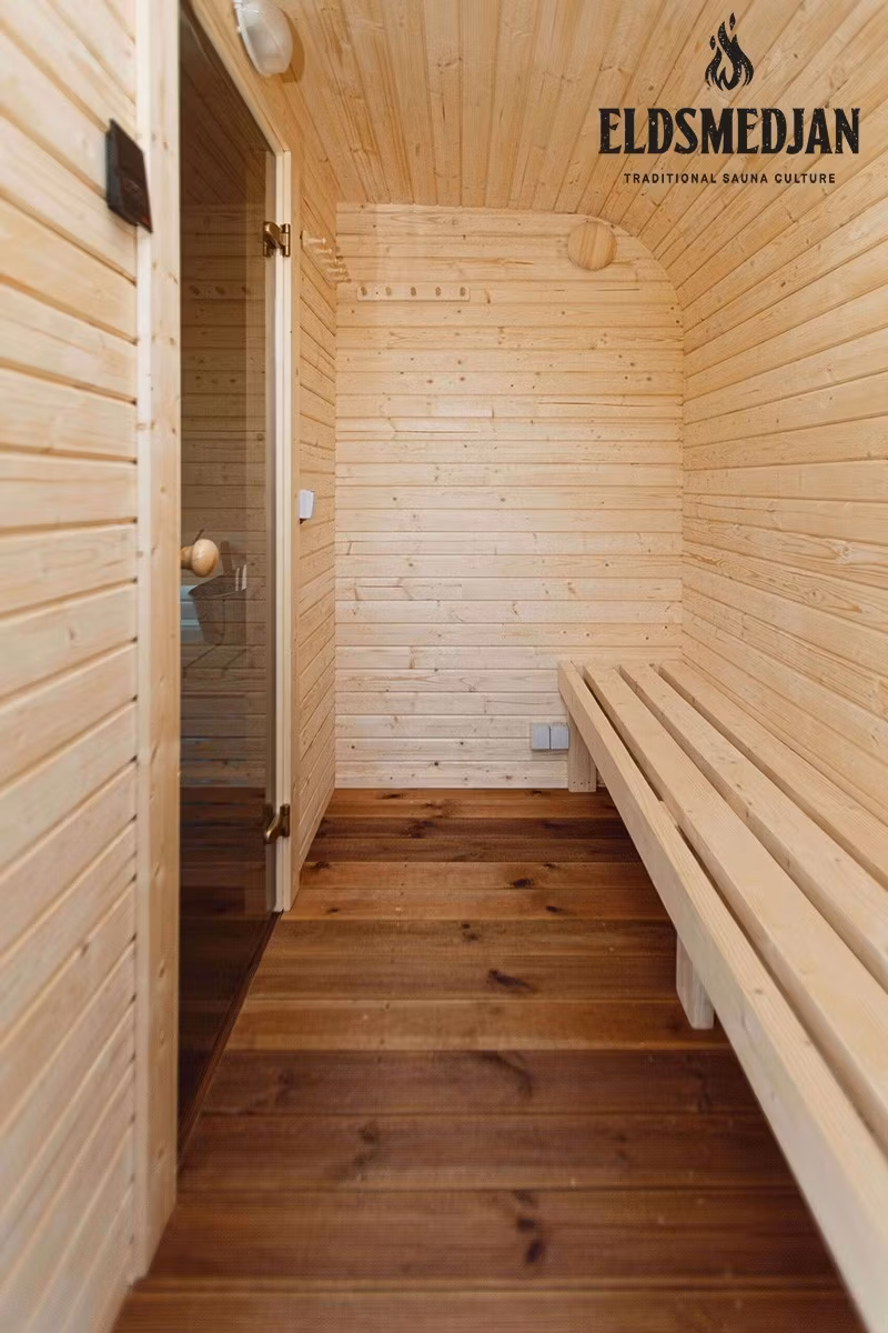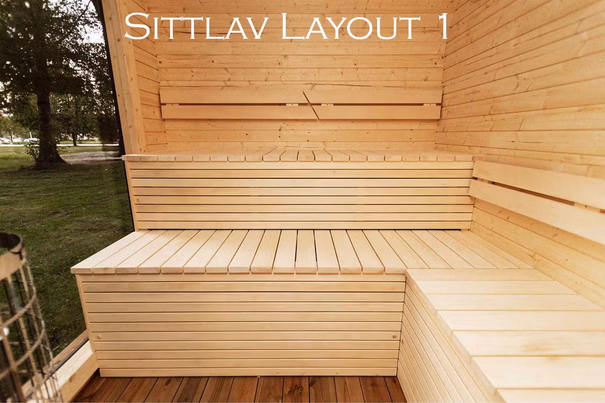 Sittplatserna är tillverkade av Asp, vilket inte blir varmt, spricker eller utsöndrar kåda. Ryggstöden på väggarna är perfekta för att hänga handdukar över och undvika fläckar. Bastun har ett beprövat system med glesat golv för dränering av vatten och luftintag för kaminen, vilket ger optimala förhållanden för bastubad.