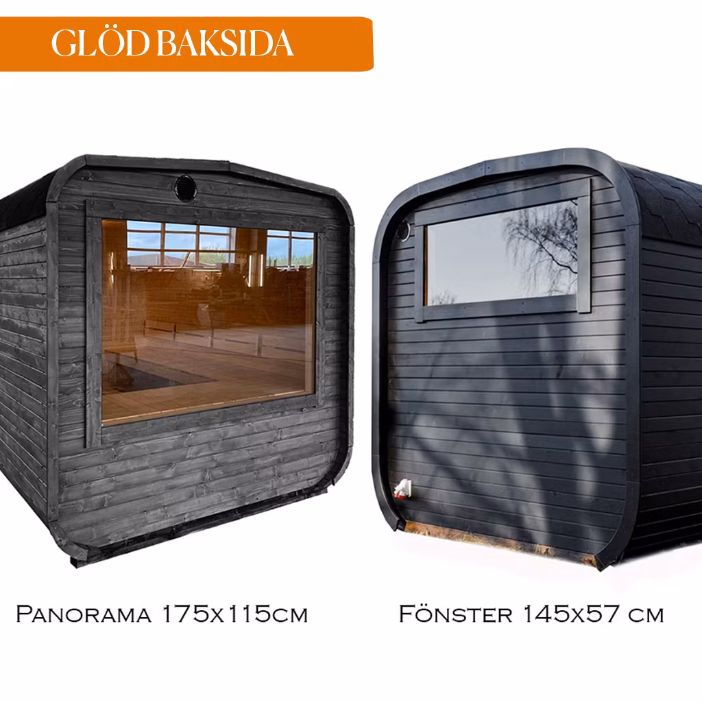 Som en extra touch har bastun också ett stort panoramafönster i gaveln, tillverkat av härdat glas.