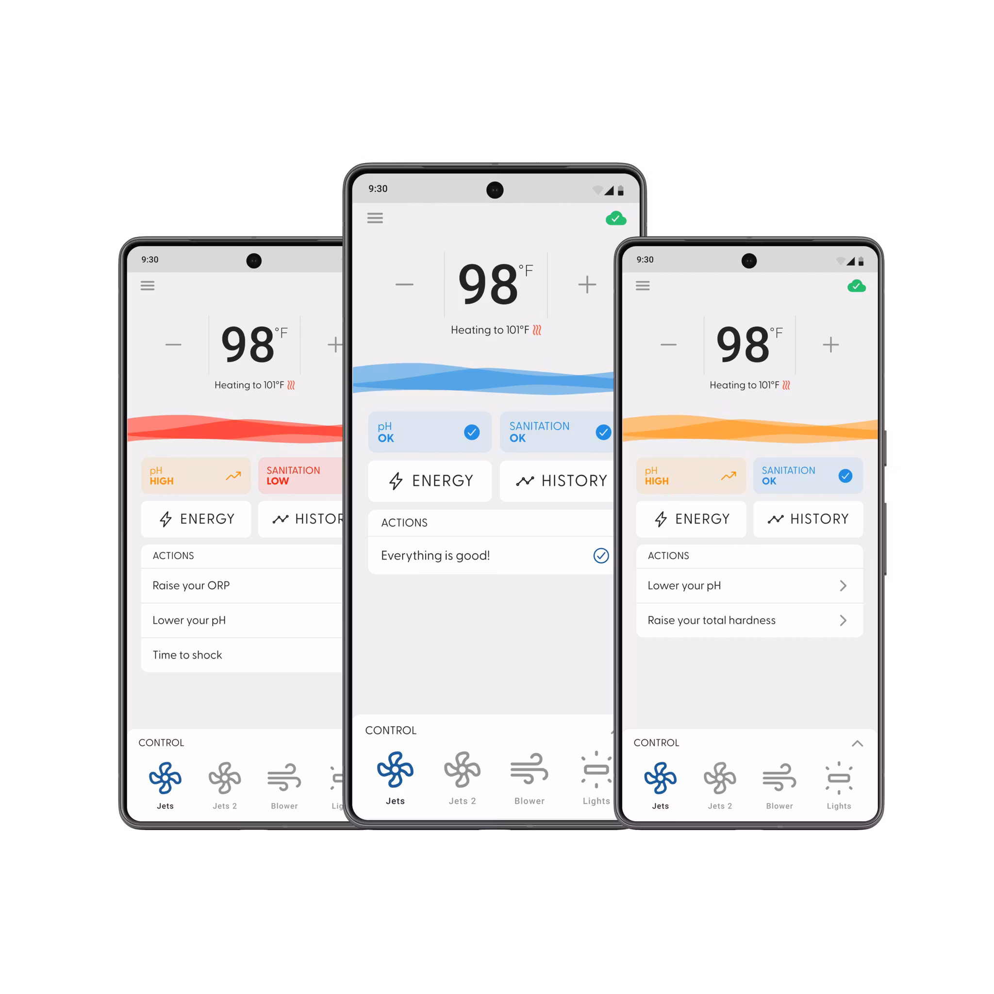 Med Gecko-appen får du en komplett lösning med realtidsaviseringar, förebyggande underhåll och full kontroll över musik, temperatur och badrutiner – direkt i mobilen.